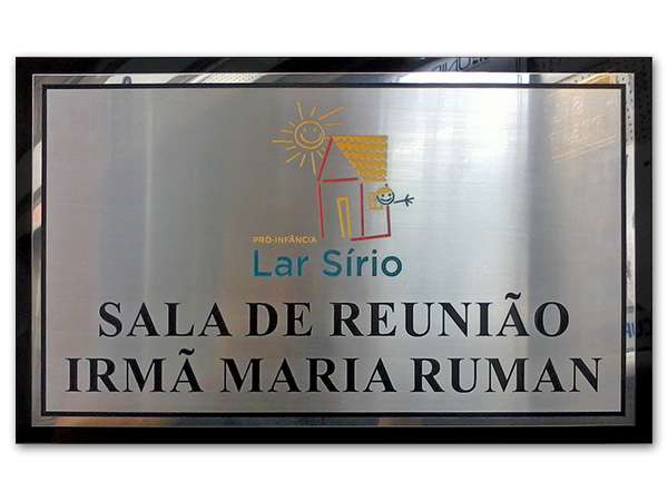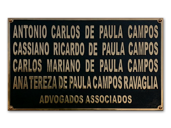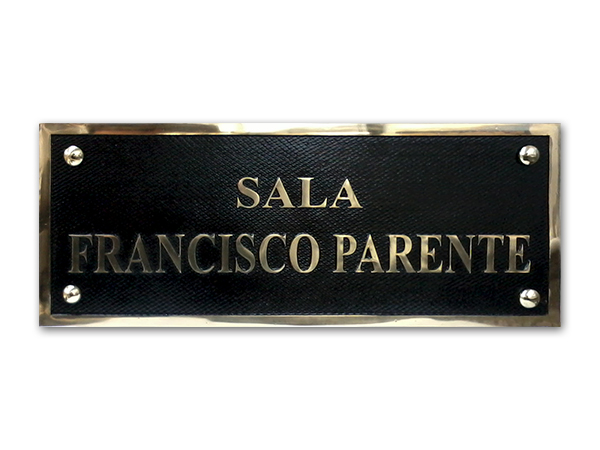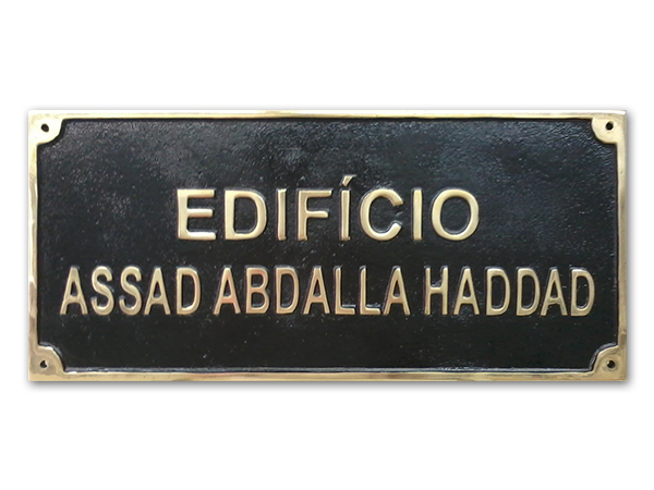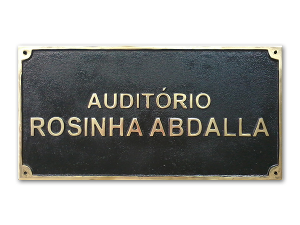 letras em latÃo fundido fixadas em chapa de ACM