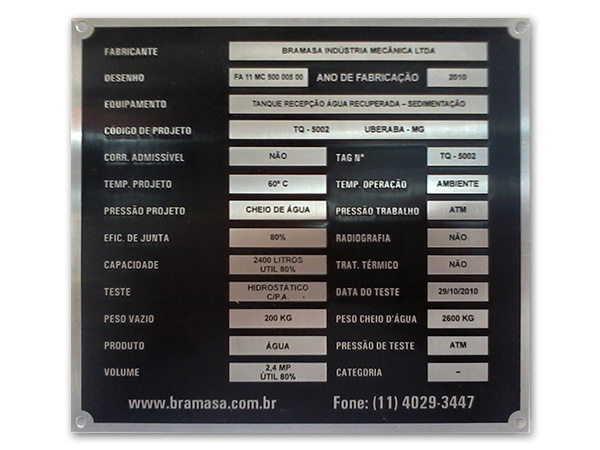 Placa de AÇo escovado gravada em alto relevo